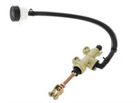 Bremszylinder mit Schlauch und Behälter. Gesamtlänge:165 mm Lochabstand Befestigung : 45 mm durch die Längsschlitze schiebbar um 6 mm Breite Langlöcher zur Befestiung für M6 Schrauben Anschlussgewinde M10x1.25 mm Passend zu fol...