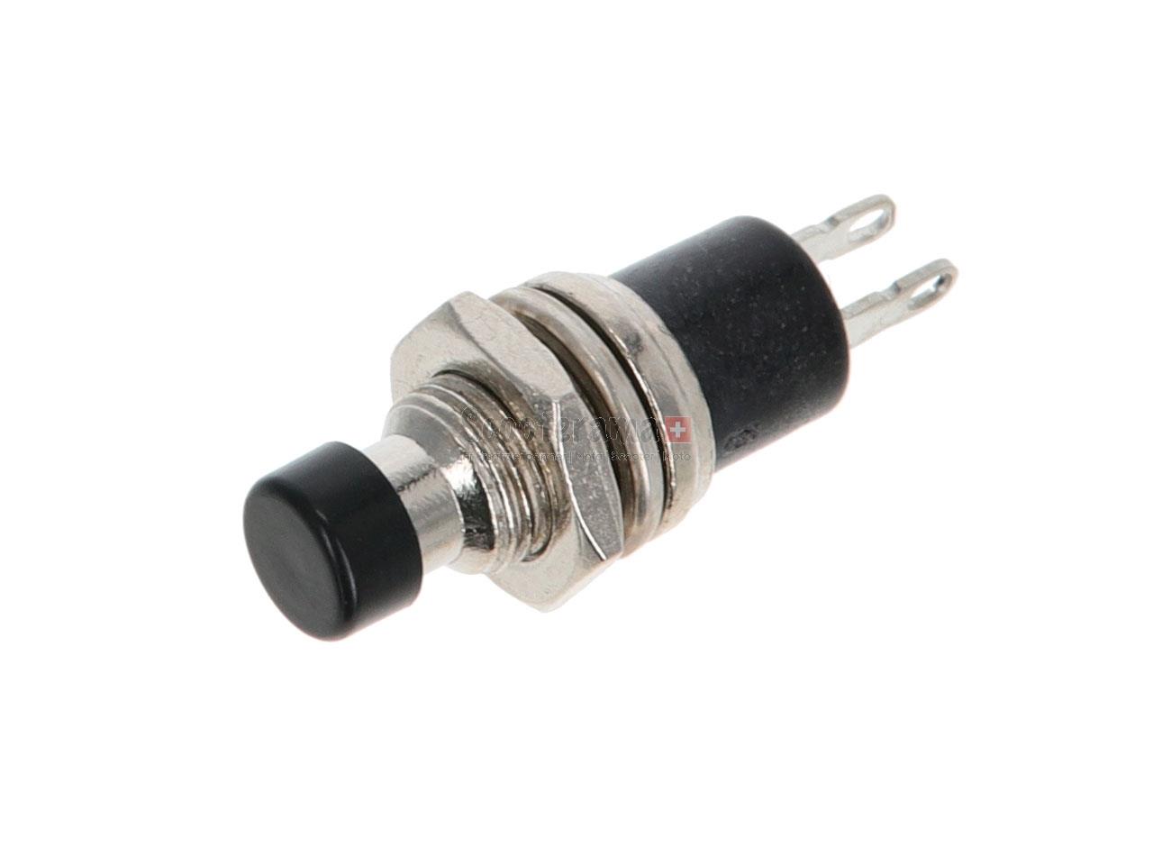 Extra kleiner, universell einsetzbarer Druckschalter. Kann als Knopf, Abstellschalter, Hupentaster usw. verwendet werden. Kein ON/OFF-Schalter - der Kontakt besteht nur, solange der Knopf gedrückt wird. Ideal für Hupe, Absteller und ähnliche Anwendungen.