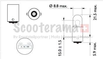 Ersatzbirne für eure Tachobeleuchtung bzw. für einige gängige Miniblinker. Bitte kontrolliert vorher die originalen Leuchtmittel. 6V/1.2W - Ba7s Sockel Qualitäts Glühlampe / Glühbirne der Marke Flosser .