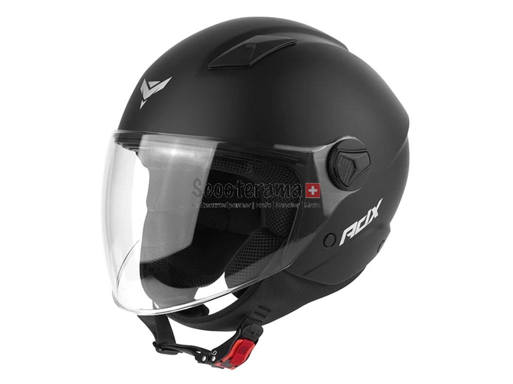 Stylischer Open Face Jethelm mit klapbarem Visier.