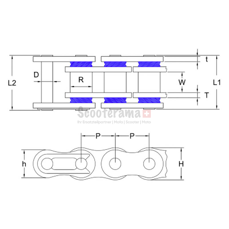 Damit die Kette gleichmäßig geschmiert bleibt und vor Verschmutzung geschützt ist, werden Ketten mit O-Ringen verbaut. Der O-Ring dichtet den Nietbolzen und die Hülse ab und verhindert so das Austreten des Schmierfettes zwischen Bolzen und Hülse. Die Schmierung reduzie...