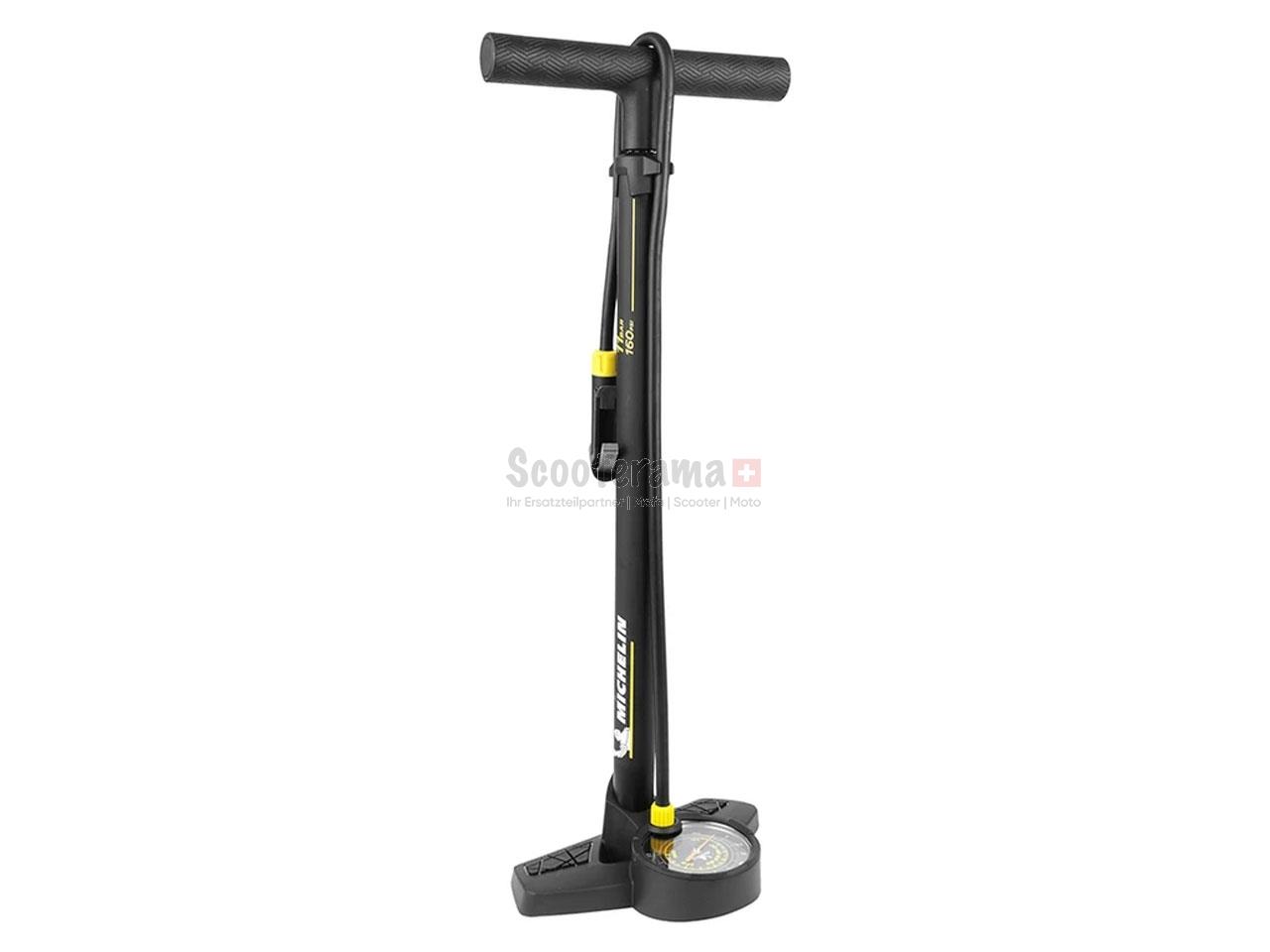Die MICHELIN AIR CONTROL Standpumpe ist eine robuste und zuverlässige Mofa - Fahrradpumpe für den täglichen Einsatz. Dank stabilem Stahlgehäuse und integriertem Manometer an der Luftpumpe kannst du den Reifendruck präzise kontrollieren und einstellen.