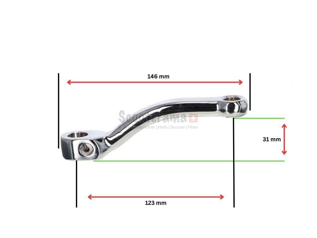 Universell für unterschiedliche Mofas passende Pedal-Arme in guter Qualität. Unter anderem passend für Piaggio Ciao, SI, Bravo, Sachs mit runder Tretlagerachse. Kubellänge Mitte-Mitte: 133mm Gesamtlänge: 152 mm Gewinde 9/16" = 14mm Kröpfu...