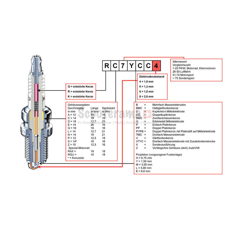 Wichtig beim Motorentuning ist der richtige Wärmewert der Zündkerze, ansonsten kommt es zur Überhitzung des Zylinders, bzw. die Zündkerze verrußt ständig. Eine kalte Zündkerze gibt mehr Wärme an den Zylinderkopf ab, die Elektrode neigt zum Verrußen...