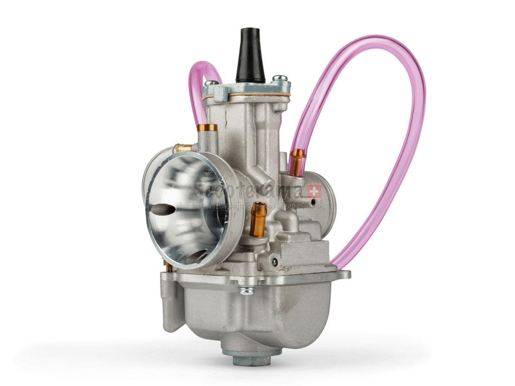 Contient : gicleur montés à l'intérieur (HD 95, ND40, PJ32), Filtre à air (d=50mm), set de gicleurs principaux (98-120) Les très connus carburateur Keihin PWK avec boisseau semi-elliptique sont depuis longtemps le nec plus ultra en compéti...
