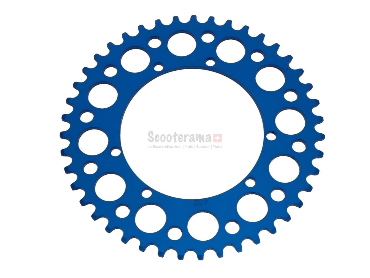 Couronne AKOA alu "bleu anodisé" 43 dents, vélomoteurs Puch Maxi