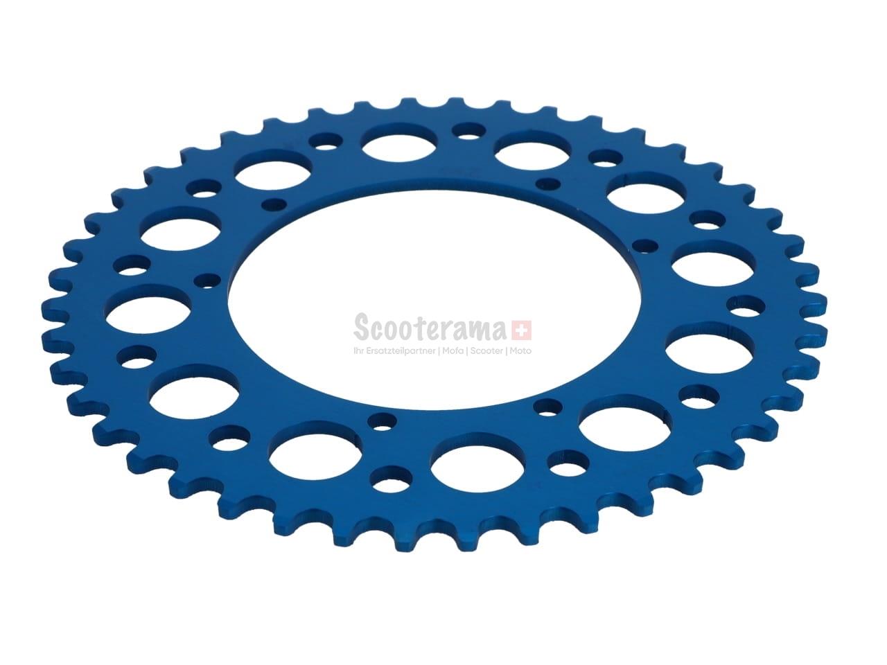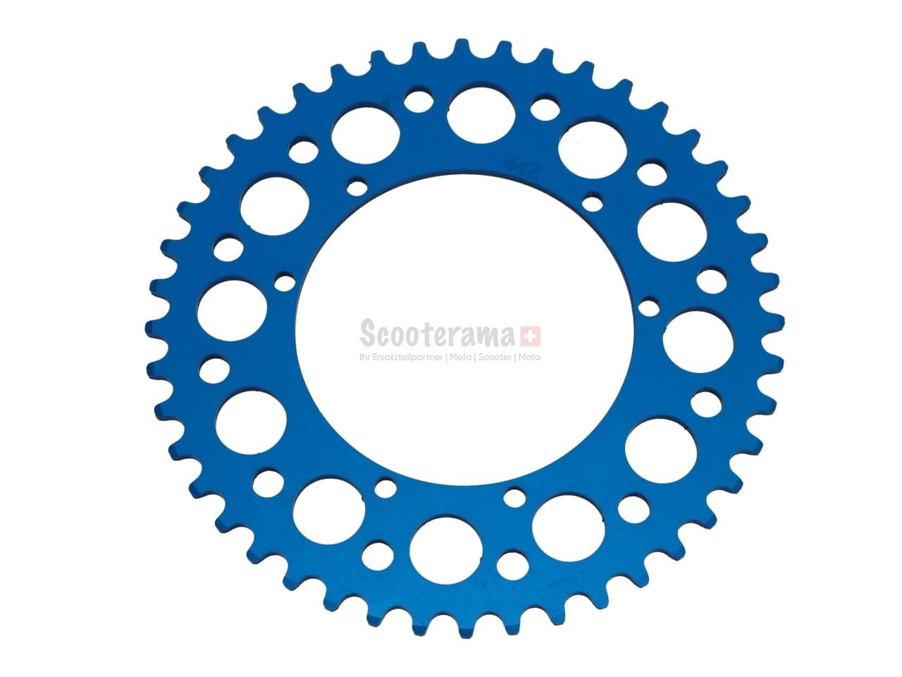 Couronne AKOA alu "bleu anodisé" 44 dents, vélomoteurs Puch Maxi