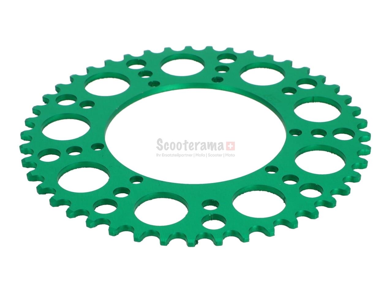 Couronne AKOA alu "vert anodisé" 46 dents, vélomoteurs Puch Maxi