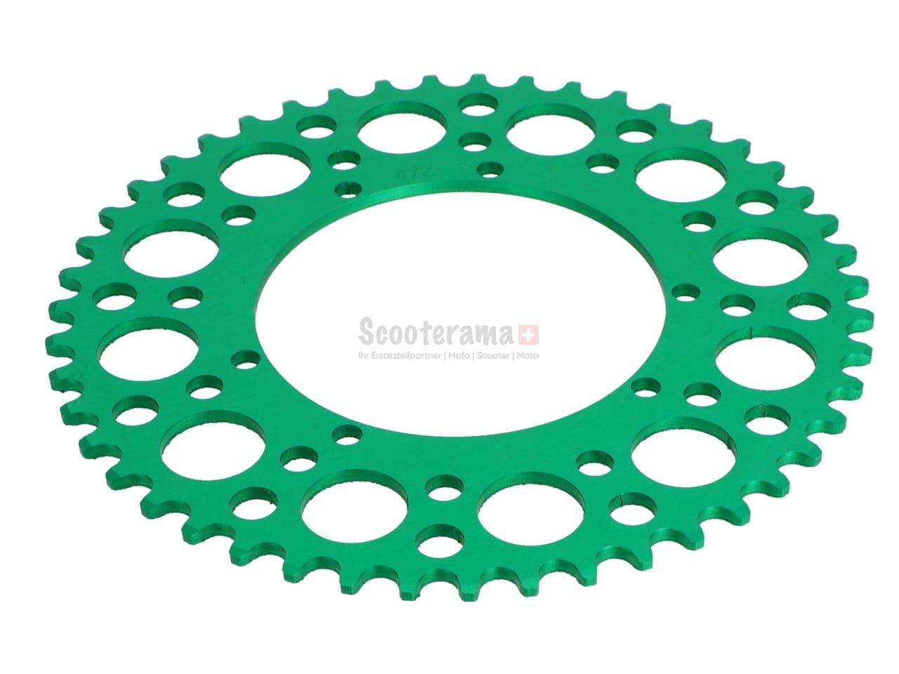 Couronne AKOA alu "vert anodisé" 47 dents, vélomoteurs Puch Maxi