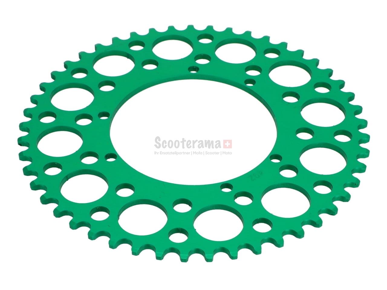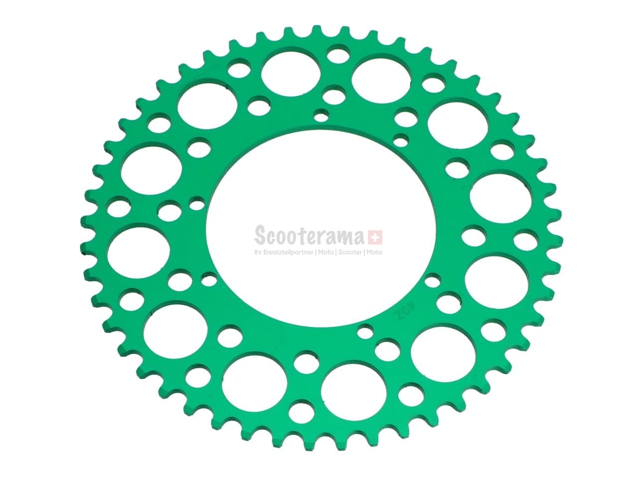Couronne AKOA alu "vert anodisé" 49 dents, vélomoteurs Puch Maxi