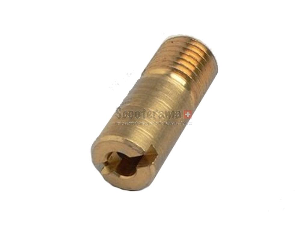 Vous trouverez le gicleur principal du carburateur Piaggio SI sous le tube d'émulsion et la vis de correction d'air du gicleur principal