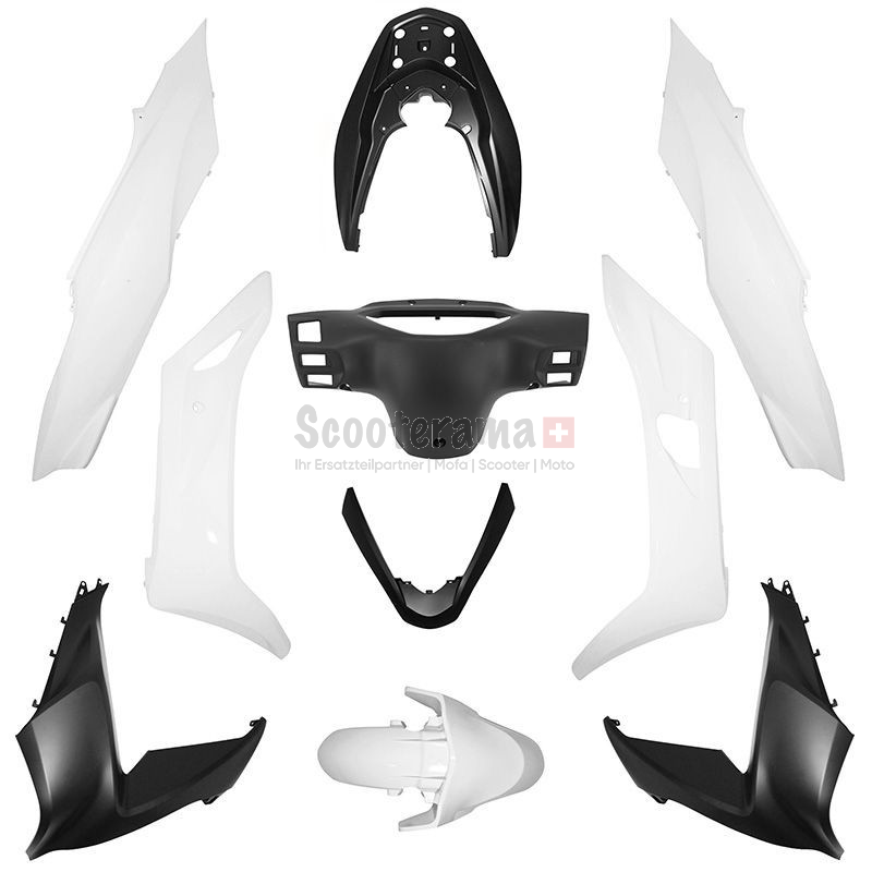 Kit carrosserie noir/blanc brillant (10pcs), scooter Honda PCX 125, 2014-2017