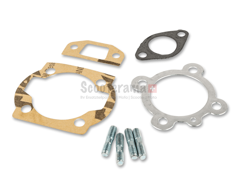 Set de joints pour haut moteur cylindre Airsal 44 et 45mm Puch Maxi. Contient : Joint de culasse Joint d'embase Joint d'admission Joint d'échappement