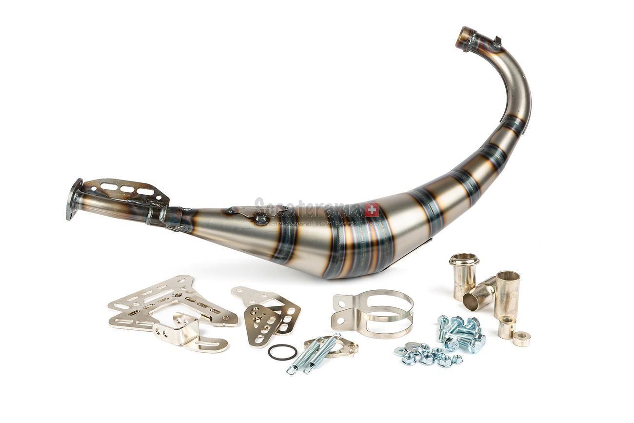 Le pot d'échappement stage6 streetrace passage bas, est fabriqué en tôle roulée soudée et dispose d'un kit de fixation pour toutes les motorisations Derbi ou AM6.
